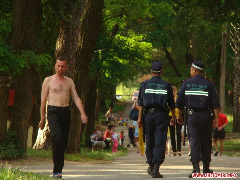 Несмотря на понедельник, зрителей и просто загорающих было достаточно много. В основном житомиряне с семьями спешили в парк после 7 часов вечера.
