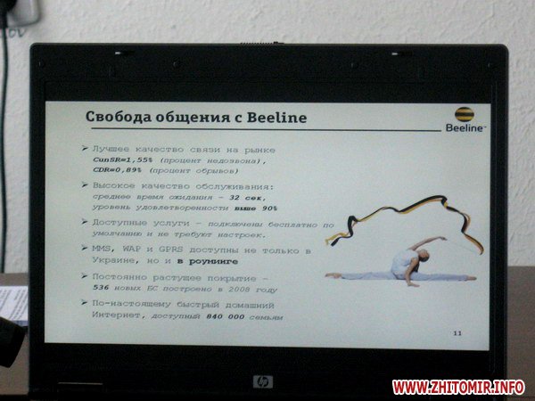 Житомир стал шестым городом на Украине, где Beeline начал развивать сеть широкополосного доспута в Интернет и, как показало время, - активно и успешно.