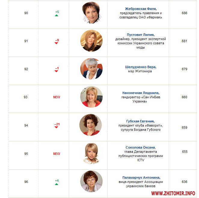 Кстати, с потерей должности председателя Житомирского облсовета еще одна известная житомирянка – Ирина Синявская перестала фигурировать в рейтинге.
