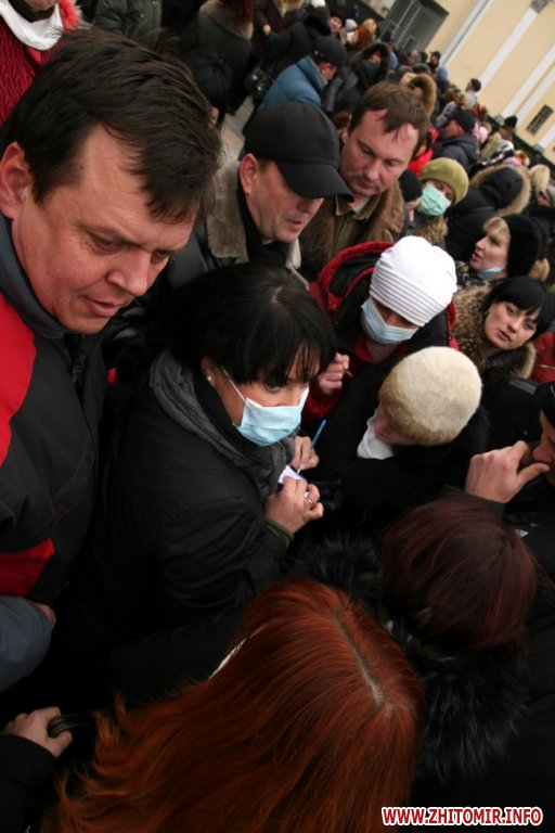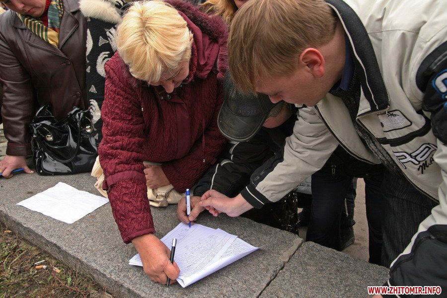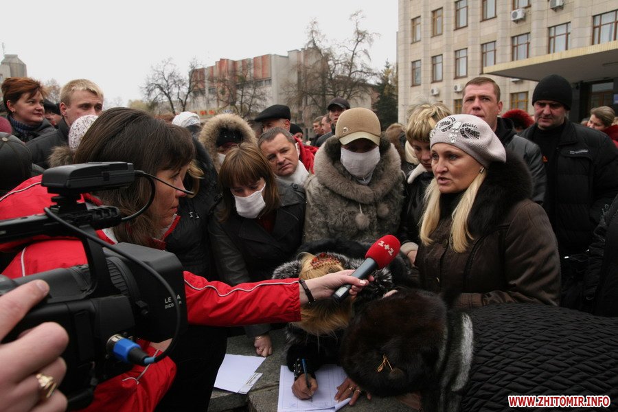 В Житомире частные предприниматели трех крупных промтоварных рынков пикетировали здание облгосадминистрации с требованием возобновить работу.