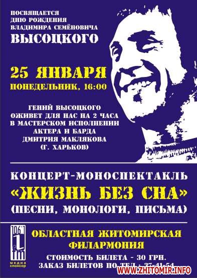В конце месяца в Житомире пройдет моноспектакль в честь дня рождения гениального актера, поэта и певца Владимира Высоцкого.