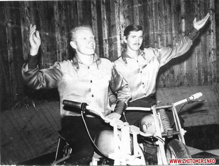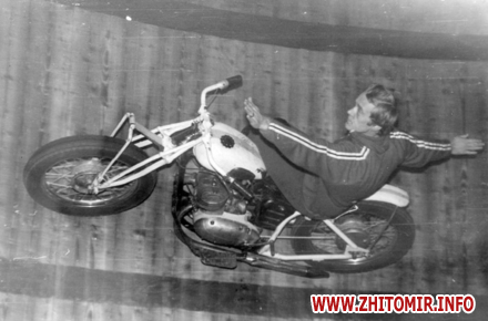 68- річний житомирянин Йосип Бовсуновський свого часу виконував на мотоциклі карколомні трюки «в бочці», а зараз невиліковно «хворіє» небом. Досьє: - народився 5 червня 1942р. в с. Рудня Городище Житомирського р-ну; -з юнацьких років навчився робити сальто, ходити на руках та за плугом, доїти корів, а ще дуже полюбив красивих дівчат, екстрим та ризик; - в 1959р. закінчив Троянівську СШ; - у віці 17 років та 8 місяців одружився, точніше одружила мати; - мав 16 законних жінок,- це тих, з якими прожив більше пів року; - з 1962р. по 1972 р.- водій голови колгоспу; -1972- 19778рр.- мотогонщик «в бочці»; - за період виступу в цирку 7 разів падав, 2 – ламав ребра; - з 1978р - водій автобуса, три роки добровільно працював в Чорнобильські зоні після аварії на ЧАЕС; - у 50 років навчився літати на дельтаплані. - Пане Йосипе, звідки у Вас підвищений вміст адреналіну в крові? - Сам не знаю. Можливо, це пояснюється тим, що моє дитинство трішки захопило війну, яка стала головною темою юнацьких ігор, наближених до «бойових» дій, тільки без застосування зброї. - А чому Ви вирішили задовольнити свою жагу до екстриму саме в гонках « в бочці»? - Все почалося в 1968 році. Тоді я вперше побачив їзду по вертикальній стіні. Це були виступи Ніки та Петра Шалашиних , котрі демонстрували карколомні трюки «в бочці» біля Житнього ринку. Рішення прийшло одразу, але мене довго не брали в мотогонщики, тому що мав на той час вже трьох дітей. - Ваша мрія здійснилася аж через 4 роки? - Так. Я багато працював над собою фізично і психологічно, бо знав про існуючі в «мотогонці» вимоги. І ось, одного разу, до Житомира знову приїхав « мотоцирк», і я спробував випробувати долю. Господареві «бочки» прийшлося демонструвати все, на що був здатний: і сальто зробив, і стійку на капоті автомобіля. Потім «покатали» мене. Коли зліз з мотоцикла, встояти- не можливо, бо «в бочці» діють відцентрові сили і виникає перевантаження організму. Але я встояв, бо одразу став на голову, створив «триногу», відтак рівновагу. А через 15 днів інтенсивних тренувань я піднявся «на стінку». - Яку найскладнішу фігуру виконували? - Уявіть таку картину. Бочка, діаметром 7,5 метра і висотою 4,5м. На швидкості 70 кілометрів на годину по вертикальній стіні «летить» мотоцикл. Гонщик в цей час переносить трьохкратне перевантаження, в очах темніє. І він пускає руль, сідає боком до нього, зав'язує чорною хустинкою очі, - і так робить 5 кругів. Це і є найскладніша фігура «пілотажу» «в бочці», яку я виконував без особливих ускладнень. - Хочете сказати, що у Вас проходило все як по- маслу? - Та ні, я сім разів падав, двічі ламав ребра, але щоразу після цього мені знову хотілося піднятись «на стінку». Правда були і такі, хто закінчував кар’єру гонщика після першого падіння. Все залежить від психіки людини. - А скільки платили за таку роботу? - 600 карбованців, звісно, радянських. Близько половини цієї суми я добросовісно висилав дружині, а половину пускав на власні потреби: молодий тоді був, «в соку», хотілося погуляти, дуже любив гоцулочок… - Чому залишили улюблену справу? - Причина одна - шкідливість роботи, але не ризик. Справа в тому, що під час виступу в бочці накопичуються вихлопні гази, які гонщику доводиться вдихати. А я ніколи не обмінював гроші на власне здоров'я, хоча усвідомлено ризикував травмуватись. Але це інший бік медалі. - Другою сторінкою вашого екстриму став дельтаплан. При