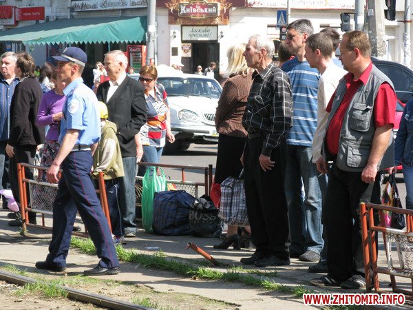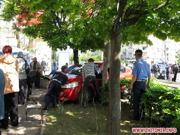 8 мая, около 9.30 утра в Житомире на улице Московской иномарка под управлением женщины повалила металлическое ограждение и влетела в толпу людей на трамвайной остановке. Пострадали двое мужчин, в возрасте, приблизительно 48 и 70 лет. Со слов очевидцев, под колеса «женской» иномарки попали сын и отец, которые в это время стояли на остановке. 48-летнего мужчину с тяжелыми травмами головы увезла «скорая». Со слов людей, которые стали очевидцами ДТП, 70-летний мужчина «отделался легким испугом». Автомобиль свалил его с ног, после чего старый мужчина сам поднялся и отряхнулся.