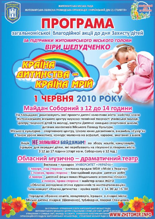 1 червня 2010 року в Житомирі розпочинається загальноміська акція до дня захисту дітей.