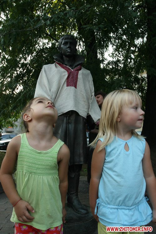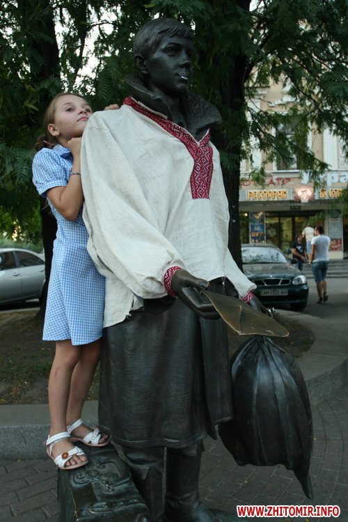 В Житомире молодежь решила неординарно провести День независимости Украины, одев в вышитую сорочку памятник Лариосику из Житомира, героя книги Булгакова «Дни Турбиных».