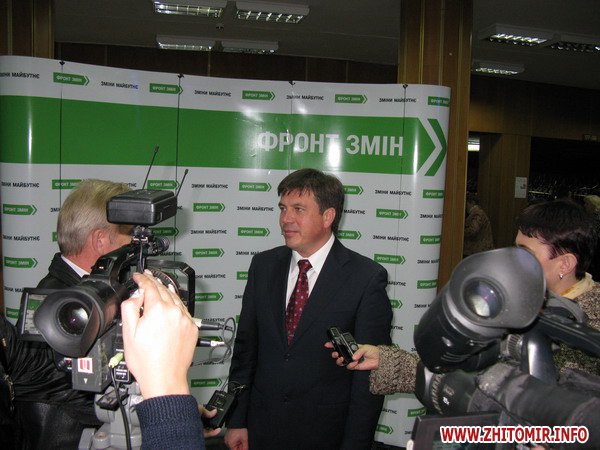 - Мы чувствуем поддержку и доверие житомирян, поскольку многие их них уже убедились, что «Фронт змін» является перспективной политической силой. У нас есть много шансов для победы: талантливый и авторитетный лидер – Арсений Яценюк, есть мощная команда в области и городе, они своей работой по конкретному плану действий доказывают избирателю, что достойны поддержки жителей Житомира. Каждый из кандидатов в депутаты подписал соглашение о политической ответственности, поэтому мы знаем, как их работа и их решения повлияли на жизнь горожан. В Украине так складывается, что в Житомире руководители крупных предприятий становятся политиками. Поэтому в первой пятерке кандидатов в депутаты Житомирского облсовета представлены успешными бизнесменами: Сергей Сухомлин – директор ООО «Визаж», которое является мощным производителем окон и занимает ведущее место в Украине, Карпека Олег – директор картонно-бумажного предприятия, которое он практически поднял с колен, Карпинский Геннадий, который является директором мебельной фабрики «Луч», Корх Олег, руководитель охранного предприятия «Форпост», которое предоставляет услуги по охране и безопасности. Это люди, которые начинали с нуля и создали в городе серьезные предприятия, а сегодня знают, как работать, чтобы достичь успеха.