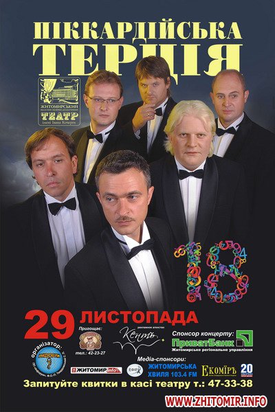 29 листопада у Житомирському обласному музично-драматичному театрі імені Івана Кочерги відбудеться концерт вокальної формації «Піккардійська терція».