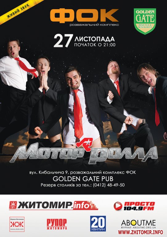 27 листопада хмельницька група «Мотор’ролла» завітає з концертом до Житомира. П’ятірка музикантів, яка останнім часом активно пропагує «повер-поп», запрошує відвідати «музичну страву», у вигляді двогодинної концертної програми.