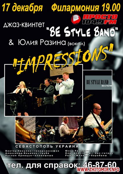 17 декабря в Житомире состоится два концерта знаменитого севастопольского джаз-квинтета ''BE Style BAND'' с участием вокалистки Юлии Разиной.
