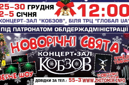 В Житомире с 25 по 30 декабря и с 2 по 5 января будет работать цирк «Ковбзов» с новогодней программой.