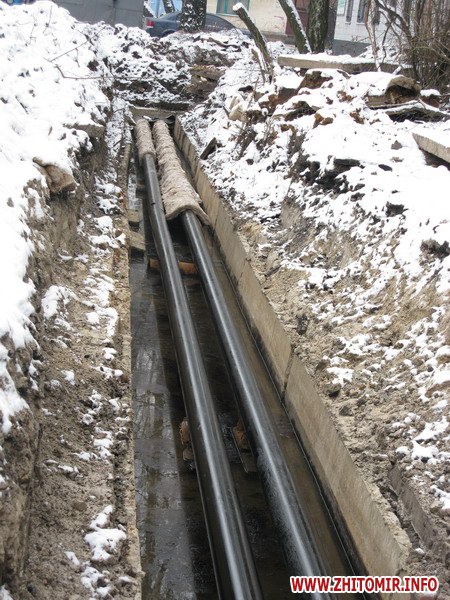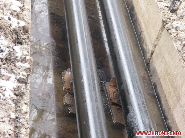 Рядом на улице Хлебной ремонтными работами занимается аварийная бригада уже другого коммунального предприятия – «Житомиртеплокоммунэнерго». Часть раскопок трактор уже зарывает, а часть труб (новенькие, недавно положенные) еще даже не изолировали, а под ними стоит вода.