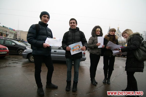 7 лютого учні житомирських шкіл разом із інспекторами ДАІ дарували водіям міста малюнки першокласників, які закликають бути обережними на дорозі.