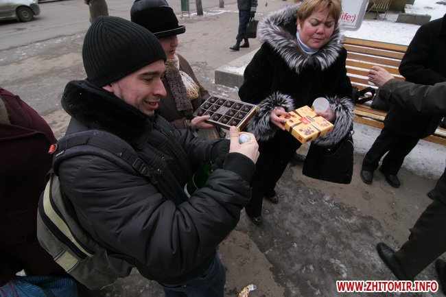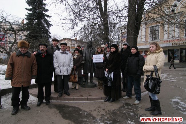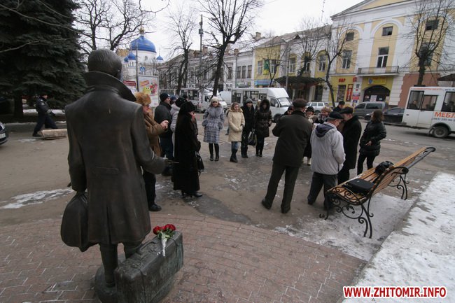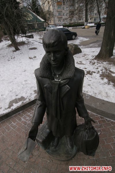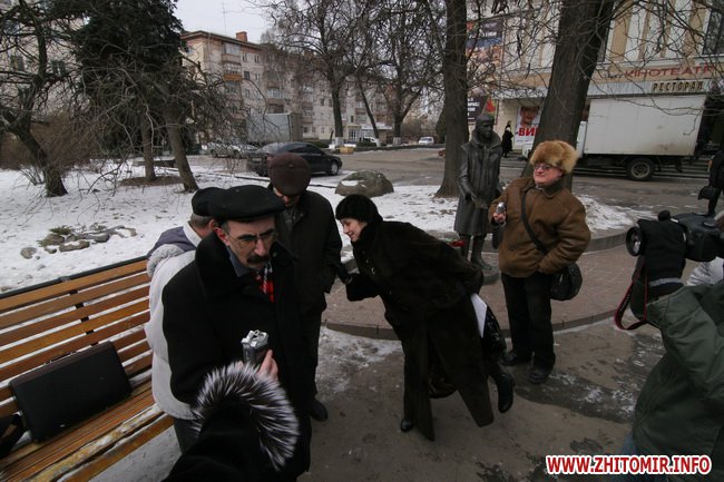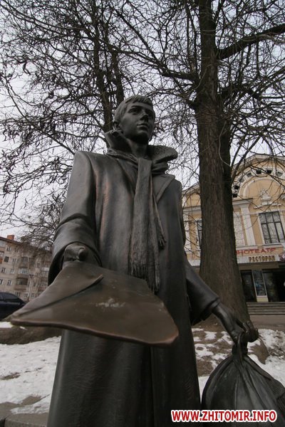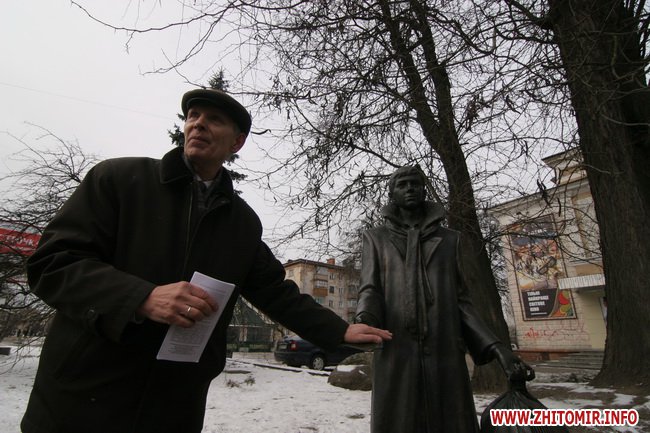 День рождения отмечали около памятника, который установили на средства житомирского предпринимателя Сергея Сухомлина 8 сентября 2007 года, в день города, перед входов в кинотеатр «Украина». Автор памятника - киевский скульптор Юлиан Осташев. На памятник потребовалось почти полтонны бронзы.