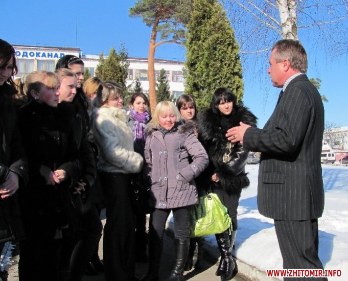 Специалисты водоканала рассказали молодым людям об уникальности такой сложной субстанции, как вода, которая обладает способностью сделать человека сильным, здоровым и красивым. Они провели экскурсию по производству, рассказали о том, какой сложный путь проходит вода, прежде чем попасть в дома житомирян, об этапах ее очистки и подготовки ее к употреблению.