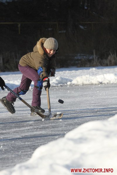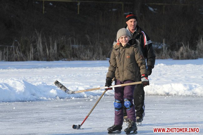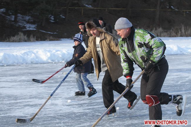 Несмотря на начало весны и солнечные дни, ночью температура воздуха опускается до 10 градусов мороза, поэтому на Тетереве лед достаточно толстый (не менее 20 см). Поэтому житомиряне пока еще могут позволить себе такую роскошь, как хоккей на Тетереве.