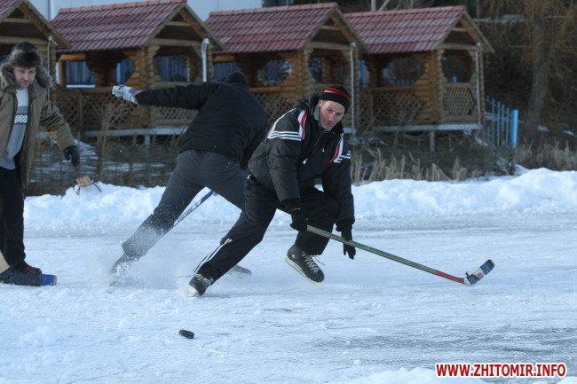 В житомирском гидропарке, на речке Тетерев, жители города обустроили небольшое хоккейное поле.