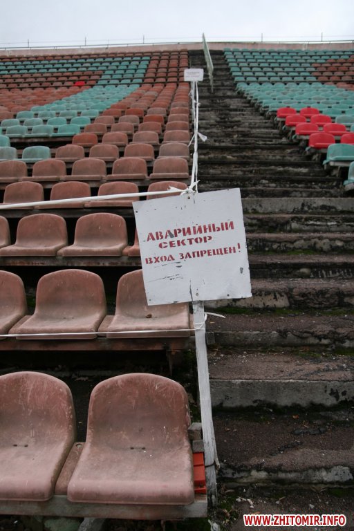 В сентябре 2009 года Житомир отметил 50-ю годовщину со времени основания в городе первой профессиональной футбольной команды, а вместе с ней и 30-ю годовщину со дня последней реконструкции центрального житомирского стадиона "Полесье". И если первое событие можно считать радостным, хоть местная команда никогда за свою историю звезд с неба не хватала, то второе — вряд ли. Сейчас житомирский стадион представляет собой весьма печальное зрелище: полуразрушенные трибуны, запущенный кочковатый газон, проржавевшие ворота. В общем, к приему футбольных мастеров он, мягко говоря, не готов. И неизвестно, когда будет — у местных властей нет денег. Реконструкция этого сооружения они оценивают в 50 млн. гривен. В июле же на эти цели в областной бюджет поступило всего 350 тыс. гривен. Власти ищут инвесторов, но те готовы вкладывать средства лишь с условием смены предназначения сооружения. Вплоть до создания на месте стадиона рынка. Власти на эти предложения не соглашаются. Все еще верят в футбольное будущее своего города. Веру эту их, видимо, питает тот факт, что страна-то у нас все же футбольная и как-никак выбрана принимать чемпионат Европы по футболу в 2012 году. Ну, небезосновательно же, в конце концов, был сделан этот выбор?
