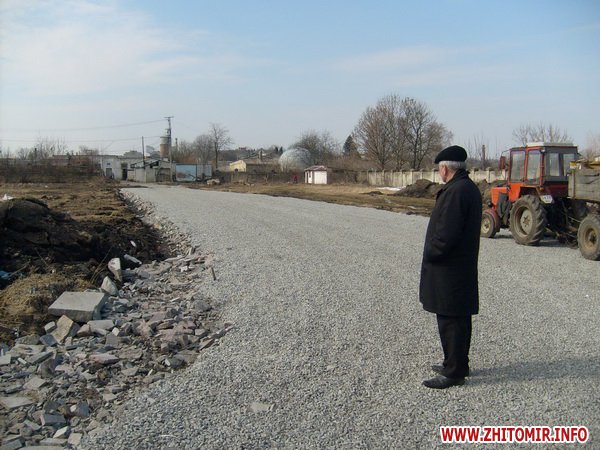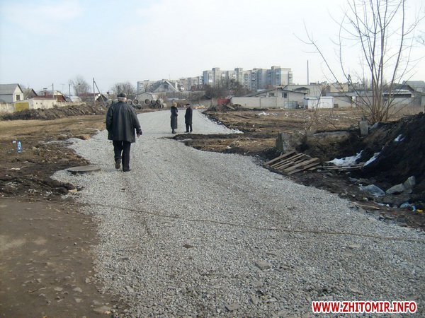 Кто-то засыпал щебнем дорогу 100 на 17 метров и, похоже, что готовится место для автостоянки или торговых рядов, возможна и установка ларьков (рядом рынки «Тетерев» и «Сенный»). Происходит захват городской земли бывшего стадиона «Электроизмерителя».