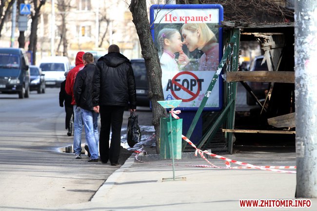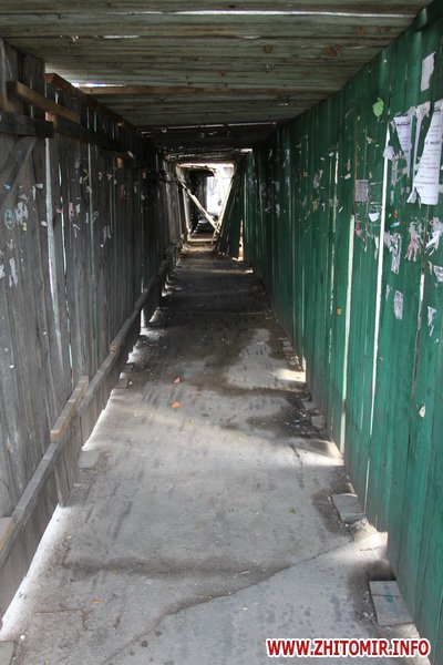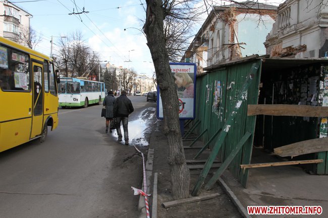 В центре Житомира на перекрестке улиц Киевская - Театральная пешеходы вынуждены ходить по проезжей части, поскольку тротуар перекрыт.