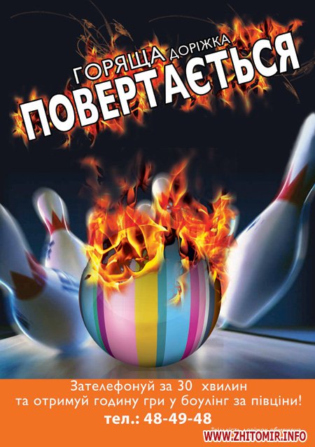 Звони по телефону 48-49-48 за 30 минут до сеанса и получай час игры в боулинг за полцены!