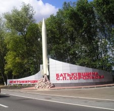 Напомним, что в сентябре 2008 года на въезде в Житомирскую область со стороны Киева был установлен памятный знак, который представляет собой стелу, вершиной которой является 12-метровый макет ракета, с обеих сторон расходятся символические «крылья» с надписью «Житомирщина - родина С.П. Королева ».