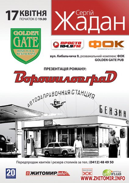 17 апреля в 19.00 в Golden Gate Pub развлекательного комплекса ФОК состоится презентация романа Сергея Жадана «Ворошиловград».