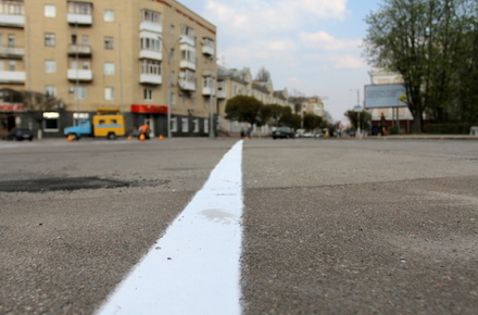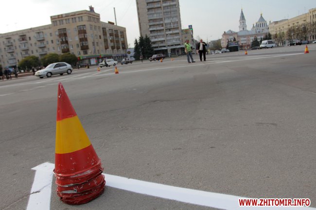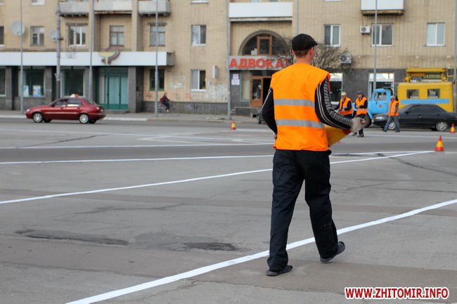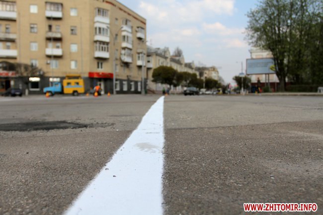 Напередодні 9 травня та поминальних днів у Житомирі почали відновлювати дорожню розмітку. 26 квітня розмічена вулиця Черняховського та майдан Соборний.