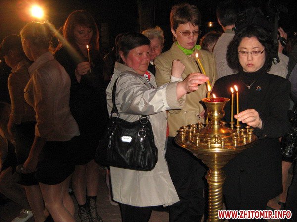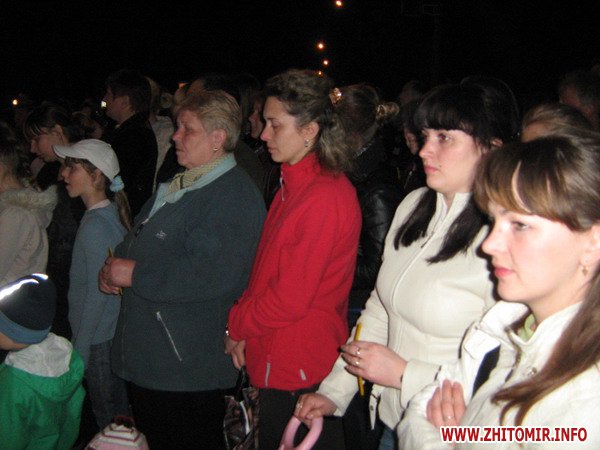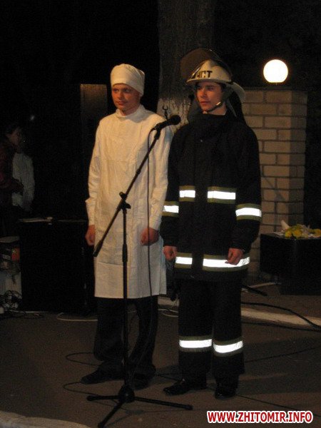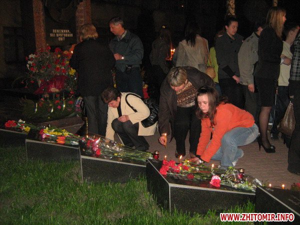 А о дев'ятій вечора на цьому ж місці, біля пам’ятника, зібралися ветерани-чорнобильці, учнівська молодь, працівники обласного управління МНС та місцеві жителі. Вже протягом десяти років у день або напередодні річниці Чорнобильської трагедії тут проводиться вечір-реквієм. Це ексклюзивний захід в межах України. Цього разу на широкоформатному екрані транслювалися документальні кадри тих подій, а учні міської гімназії № 3 продемонстрували літературно-музичну композицію «Останній лист» - своєрідну інтерпретацію доленосних моментів у житті перших ліквідаторів аварії на ЧАЕС. Усе було представлено глядачам: і щире кохання, і зловісний вибух, і несправедлива розлука… назавжди. А листоноша, що працював у м. Прип’ять, доставив свій «останній лист» - лист молодому поколінню планети, щоб пам’ятали та поважали подвиг людей, завдяки яким ми всі живемо на Землі. Сумні і милозвучні пісні, віршовані рядки про події 86-го змусили усіх присутніх знову пережити ті важкі дні та місяці післячорнобильської аварії. На очі наверталися сльози болю, бо рани Чорнобиля кровоточать як і 25 років тому. Подумати тільки: вже чверть століття ми розплачуємося за неконтрольовані атомні безумства, а скільки ще? Священнослужитель Свято-Преображенського собору відправив панахиду по загиблим чорнобильцям. А наприкінці заходу присутні запалили сотні поминальних свічок, які горіли упродовж ночі 26 квітня, символізуючи скорботу та вдячність за надану можливість - просто жити.