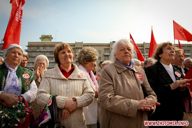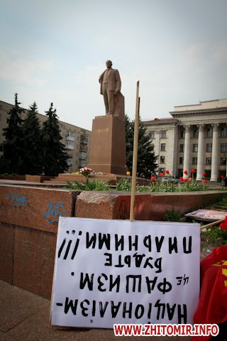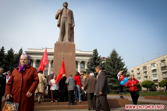 1 мая в Житомире на площади Соборной возле памятника В. Ленину, Компартия Украины и ее сторонники провели традиционный первомайский митинг, посвященный дню солидарности трудящихся.