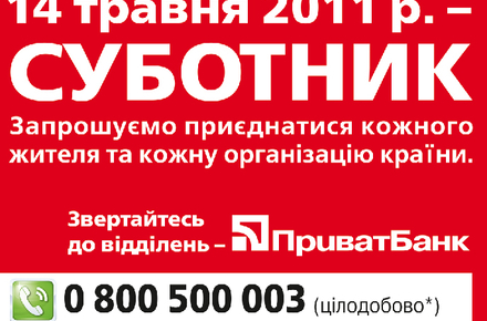 Инициатором проведения всеукраинского субботника 14 мая выступил ПриватБанк, который и предоставил ресурс для создания уникального сайта nasubbotnik.com.ua. Официально сайт откроют для всех пользователей 14 мая: одновременно с началом масштабного всеукраинского субботника, на который выйдет более 40 тыс. человек.