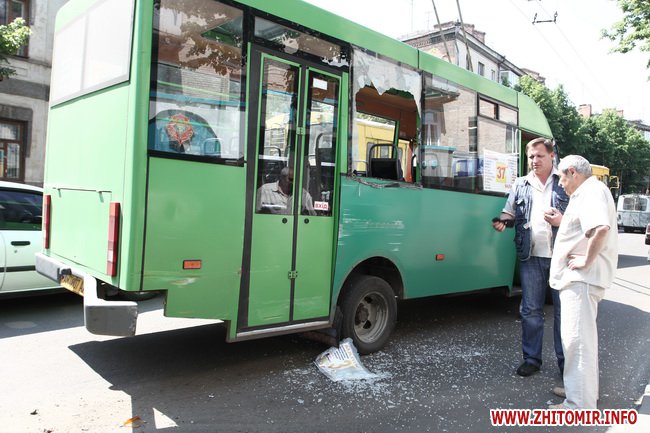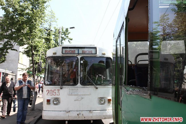 Около 11 часов утра в центре Житомира столкнулись троллейбус и маршрутка. ДТП произошло 20 мая на улице Киевской, неподалеку от Центрального универмага, прямо на остановке.