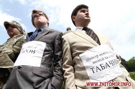 25 травня кілька студентів та активісти громадських організацій показали театралізовану сценку про, те як міністр Табачник прем’єру Азарову демонстрував злочинний, на думку студентів, закон.