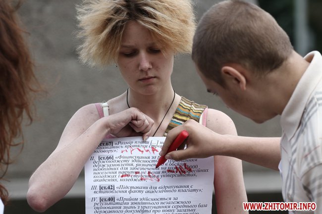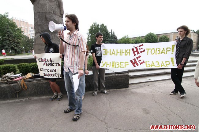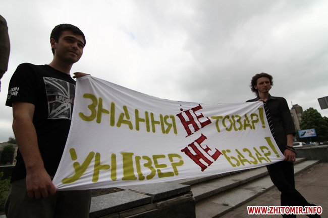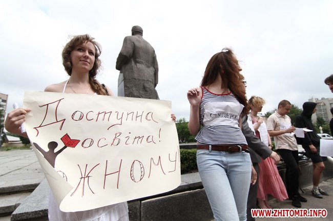 У Житомирі близько 20 чоловік протестували проти нового закону «Про вищу освіту».