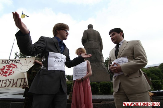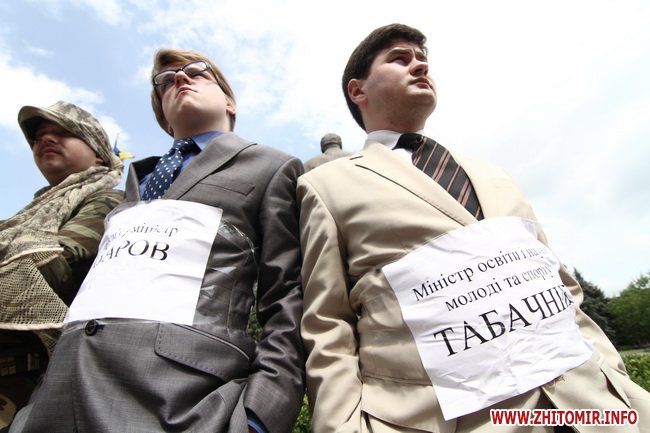 25 травня кілька студентів та активісти громадських організацій показали театралізовану сценку про, те як міністр Табачник прем’єру Азарову демонстрував злочинний, на думку студентів, закон.