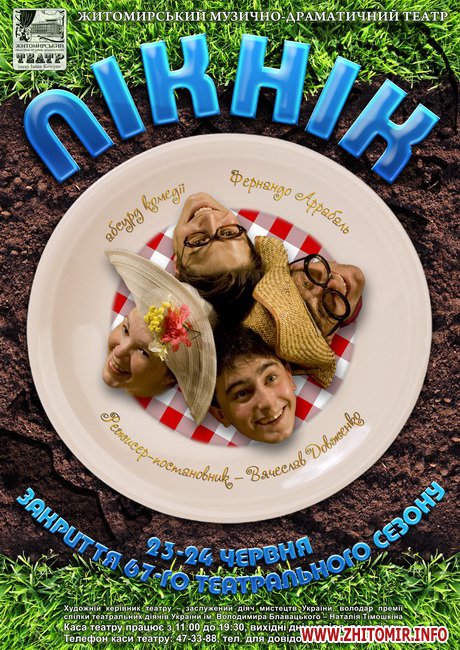 У Житомирі підходить до свого завершення театральний сезон. 23-24 червня відбудуться останні вистави у 2011 році. Актори Житомирського музично-драматичного театру на прощання збираються показати житомирянам виставу «Пікінк» за п'єсою іспанського драматурга Фернандо Аррабаля