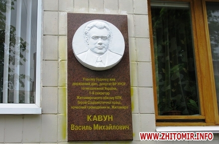 Как сообщал Житомир.info в середине мая, через пару недель после торжественного открытия, неизвестные облили желтой краской памятную доску депутату ВР УССР и Украины, первому секретарю Житомирского обкома КПУ, Герою Социалистического труда, почетному гражданину Житомира Василию Михайловичу Кавуну.