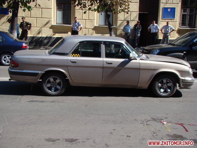 19 серпня близько 11:00 год. на вулиці Великій Бердичівській водій таксі «ГАЗ-31105» збив чоловіка приблизно 50 років, який переходив дорогу на нерегульованому переході між центром дитячої творчості та штабом армійського корпусу. За свідченнями працівників ДАІ, потерпілого госпіталізовано з переломом ноги та іншими травмами.