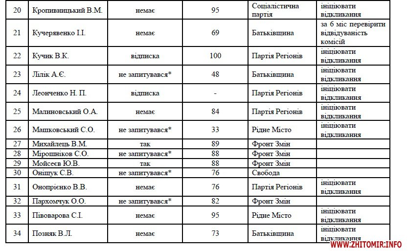 На підставі Закону та оприлюдненої в рамках кампанії «Дізнайся, як працює твій депутат» інформації у житомирян достатньо підстав, щоб ініціювати відкликання щонайменше 32 депутатів Житомирської міської ради, до чого і закликають організатори кампанії.