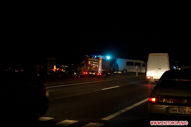 В сторону Житомира проехала с сиреной несколько скорых. На месте аварии работают еще несколько бригад скорой, подразделения МЧС, сотрудники ГАИ. Пассажирам микроавтобуса оказывают медпомощь, некоторых уже увезли в больницу. Говорят, что и в микроавтобусе есть пострадавшие, в том числе тяжело.