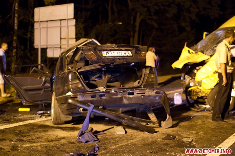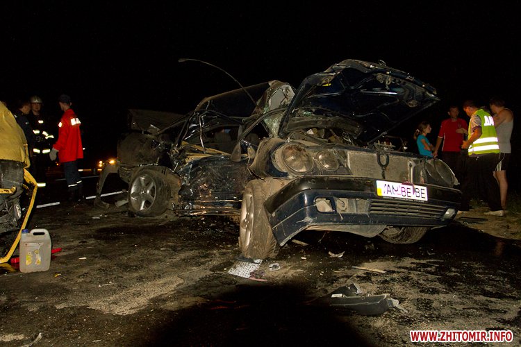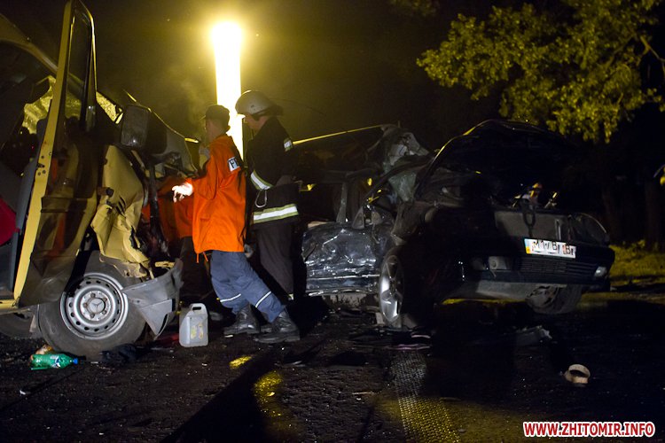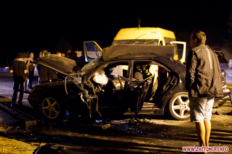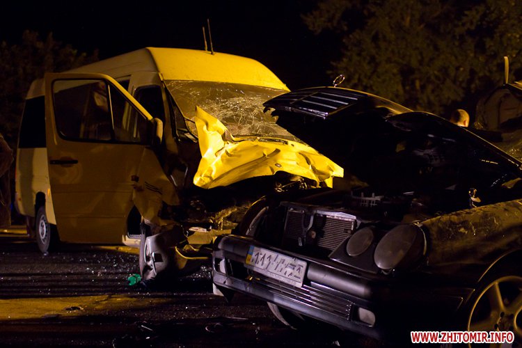 Как рассказывают журналисту Житомир.info люди, находящиеся сейчас на месте трагедии, легковой Мерседес выполнял разворот, в это время в него и врезалась маршрутка, которая следовала из Киева в Хмельницкий. По предварительным данным есть погибшие, по крайней мере, очевидцы говорят, что три тела находятся на месте аварии. Это молодая девушка и два парня. Очевидно, все ехали в Мерседесе. Легковой Мерседес сильно покорежен, практически смят в лепешку…