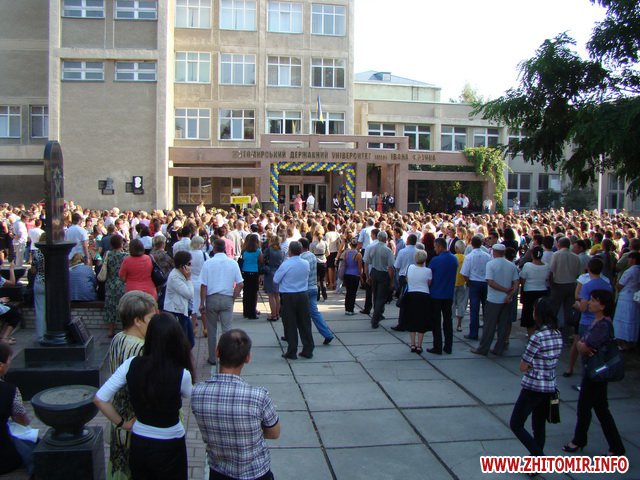 31 серпня у Житомирському державному університеті ім. Івана Франка пройшло щорічна урочиста посвята першокурсників. Перед студентами виступив ректор Петро Саух, вбраний у пурпурову мантію.