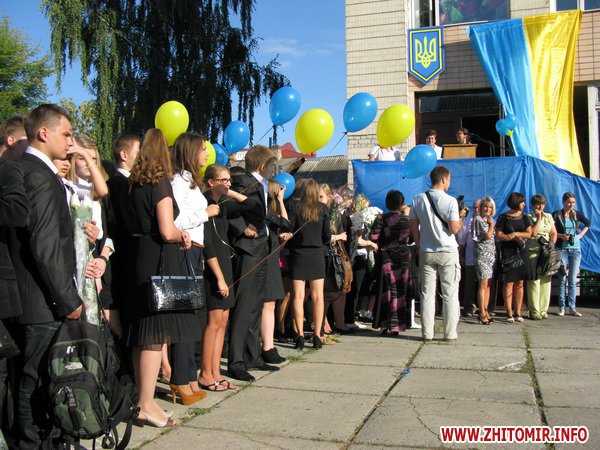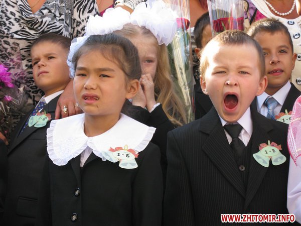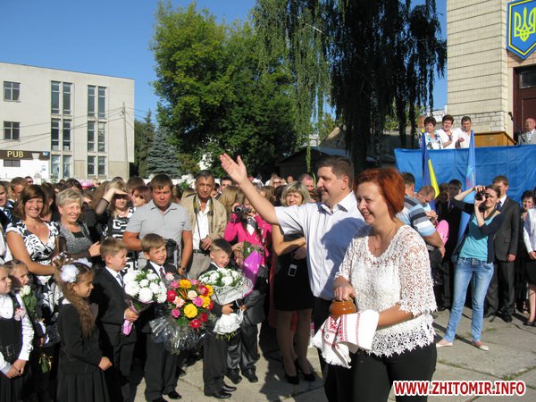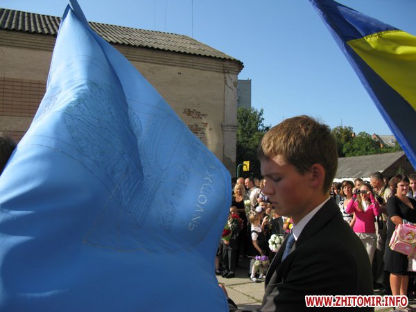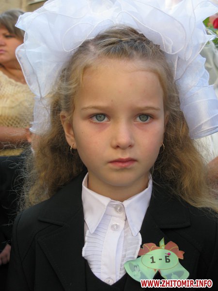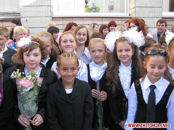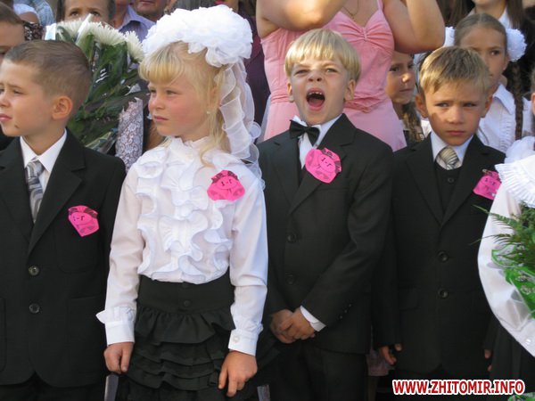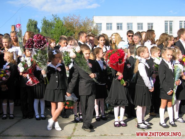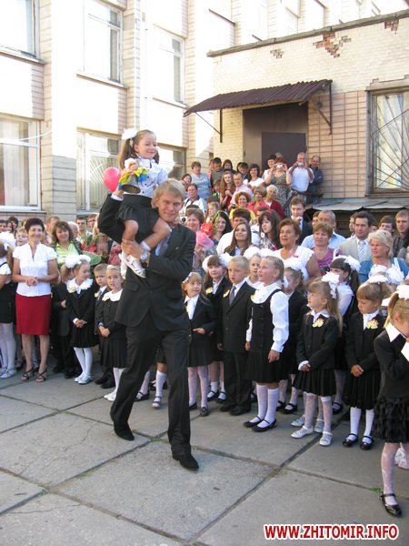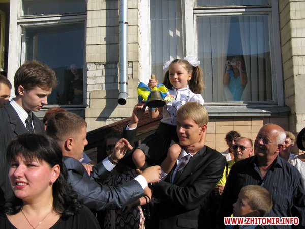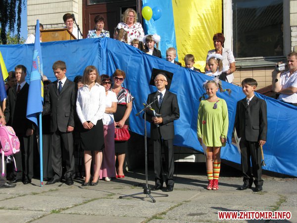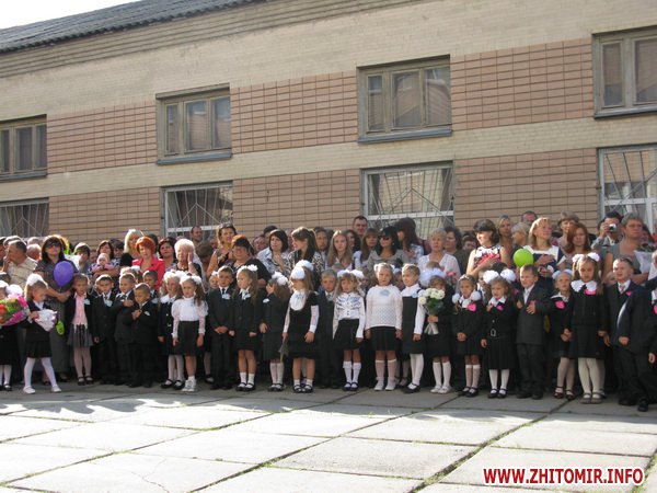 У Житомирській міській гуманітарній гімназії №23 на урочисту лінійку запрошують не всіх. Невелике подвір’я школи вмістило цього дня учнів 5-х, 10-х, 11-х класів і тих, для кого цей дзвоник дійсно перший у житті – першокласників. Цього року у гуманітарній гімназії п’ять 1-х класів.