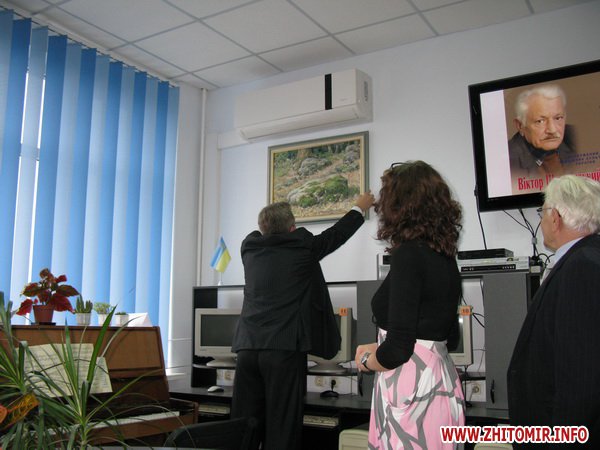 На выставке картин Виктора Шкуринского, заслуженного работника культуры Украины представлены семь картин художника. Правда, в начале презентации оказалось, что картин всего шесть. Потерю нашли – подаренная художником университету работа была в кабинете декана социально-психологического факультета