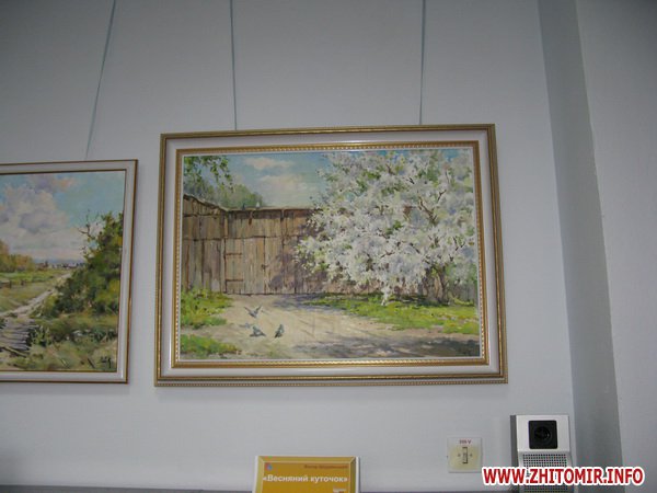 На картинах художника изображены сюжеты из жизни Житомирской области. В основном пейзажи – березовые рощи, цветущие яблони, ели в снегу.