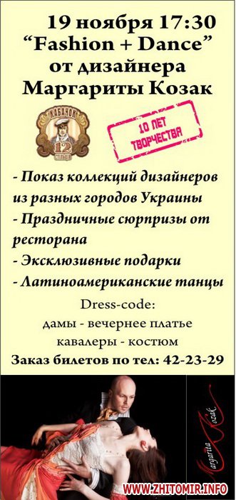 19 ноября в Житомире состоится «Fashion+Danсe» от дизайнера Маргариты Козак.