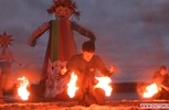 У Житомирському гідропарку з 11 години ранку святкують Масляну. До 5 години вечора людей у гідропарку не поменшало, а під головною сценою молодь влаштувала бої соломою.