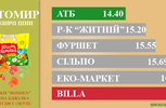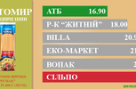 МОНІТОРИНГ ЗДІЙСНЕНО МЕТОДОМ КОНТРОЛЬНОЇ ЗАКУПІВЛІ, У МІСЦЯХ ПРОДАЖУ: AТБ, пр. Миру, 15 А, Ринок "Житній", майдан Житній ринок, Сільпо, майдан Житній ринок, 1, Фуршет, вул. Вітрука, 9 а, ЕКО-маркет, вул. Мала Бердичівська, 2/7, Billa, пр. Миру, 15.