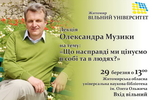В рамках проекту Вільний університет Житомира 29 березня у обласній бібліотеці відбудеться лекція заступника директора Інституту психології ім. Г.С.Костюка НАПН України з науково-організаційної роботи, професора, автора 125 наукових та науково-методичних працьОлександра Музики на тему «Що насправді ми цінуємо в собі та в людях?»